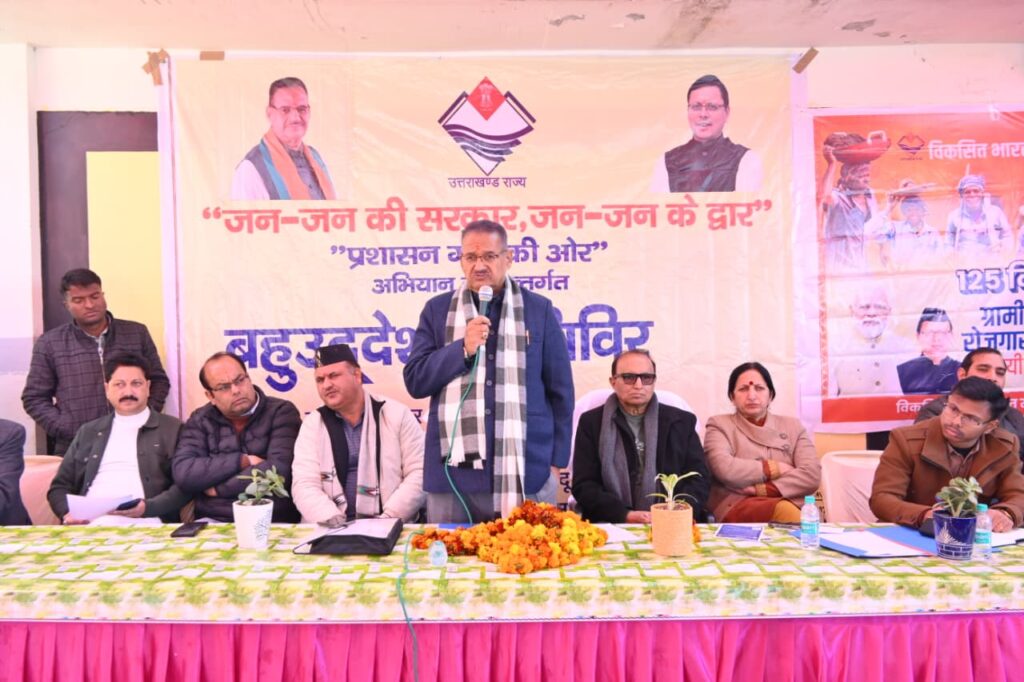 मंत्री गणेश जोशी ने कहा कि “जन-जन की सरकार, जन-जन के द्वार” अभियान शासन-प्रशासन और आमजन के बीच सेतु का कार्य कर रहा है और यह कार्यक्रम प्रदेश में सुशासन, संवेदनशीलता और त्वरित समाधान का सशक्त माध्यम बन चुका है। उन्होंने मुख्यमंत्री पुष्कर सिंह धामी का आभार व्यक्त करते हुए कहा कि सरकार का संकल्प है कि कोई भी व्यक्ति योजनाओं और सेवाओं से वंचित न रहे तथा जनता के विश्वास के साथ सेवा, सुशासन और विकास का कार्य निरंतर किए जा रहे है।।