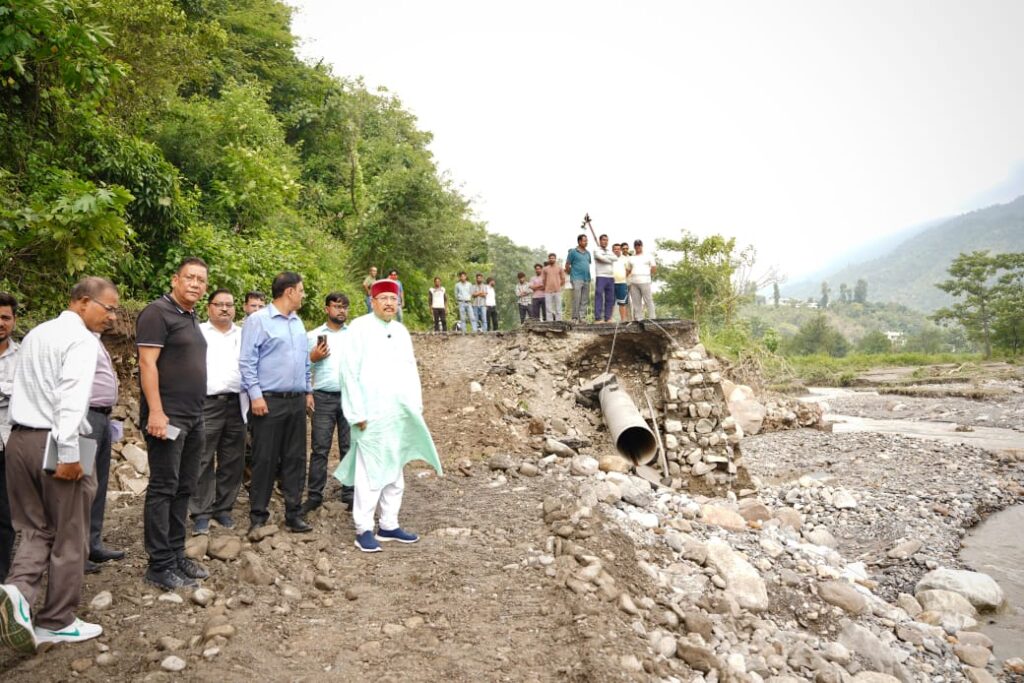 शिव मंदिर के समीप क्षतिग्रस्त सेतु का स्थलीय निरीक्षण कर लोक निर्माण एवं सिंचाई विभाग के अधिकारियों को आवश्यक दिशा-निर्देश दिए। उन्होंने बताया कि क्षतिग्रस्त 8 सेतुओं में से 05 सेतुओं पर स्थाई रूप से कार्य करवा कर यातायात हेतु चालू करवा दिया गया है, जबकि शेष 03 सेतु में से क्षतिग्रस्त देहरादून-मसूरी मोटर मार्ग में शिव मंदिर की पास क्षतिग्रस्त सेतु पर बैली ब्रिज निर्माण का कार्य युद्ध स्तर पर किया जा रहा है जिसे शीघ्र ही यातायात हेतु खोल दिया जायेगा।